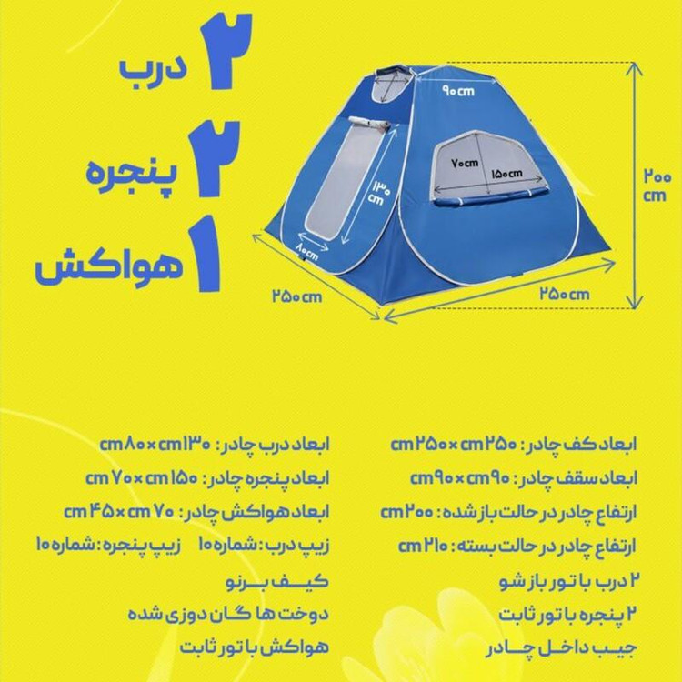 چادر مسافرتی ضد آب 12 نفره مکعبی اسکلتی (سقف عریض کلبه ای ) هواکش دار ( سبک پنجره ایتالیایی)