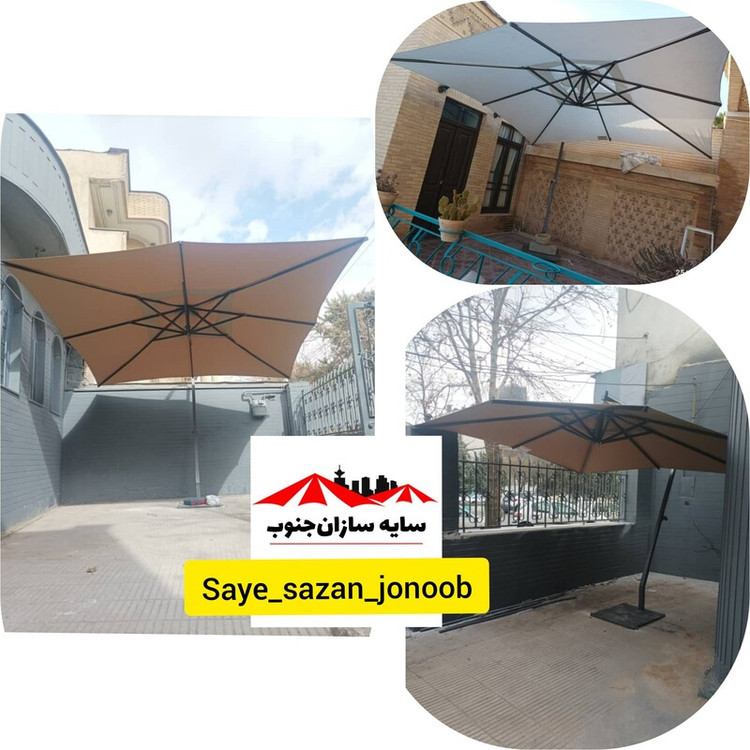 چتر سایبان با اسکلت فلز محکم در برابر باد و روکش برزنت نانو درجه 1 ضد اب و افتاب
