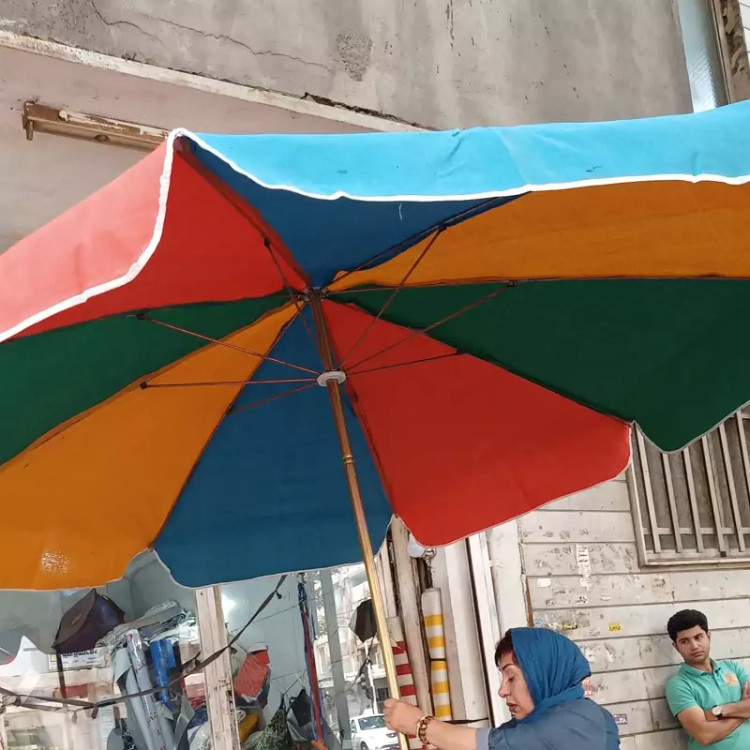 چتر سایبان از جنس برزنت و اسکلت آهنی بسیار محکم و پایه وسط که سایه آن بسیار خنک میباشد ضد آب نیست و برزنتی مناسب آفتاب است دارای یک لوله برای تنظیم ارتفاع و یک پایه برای ایستادن کف زمین است( پایه فلزی) تا شو بوده و در صندوق ماشین قابل حمل است