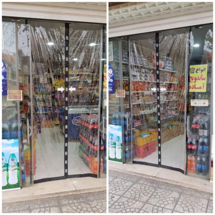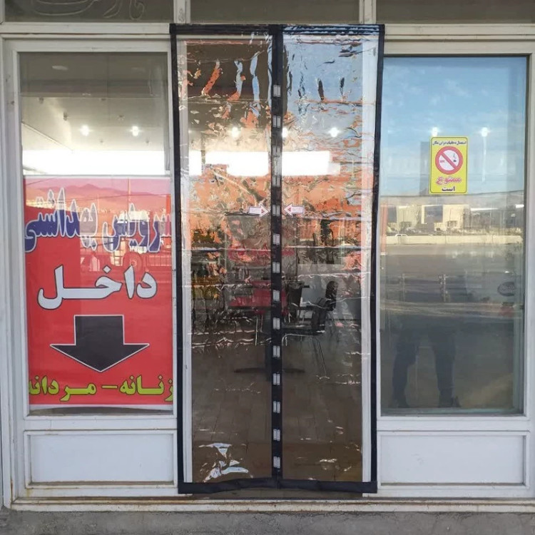 پرده طلقی مغناطیسی طلق رویال گروپ شفاف دوخت و متریال درجه یک 16 عدد آهنربا بصورت جفت 2.40 متر ارتفاع و 1.60 متر عرض
